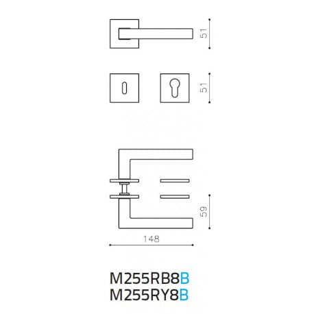 W komplecie: klamki, śruby, trzpień, trzpień 8mm, imbusy, klucz imbusowy